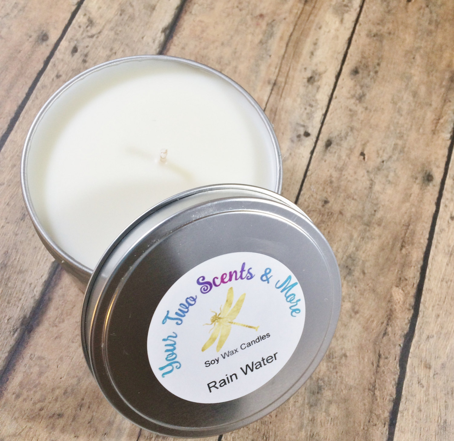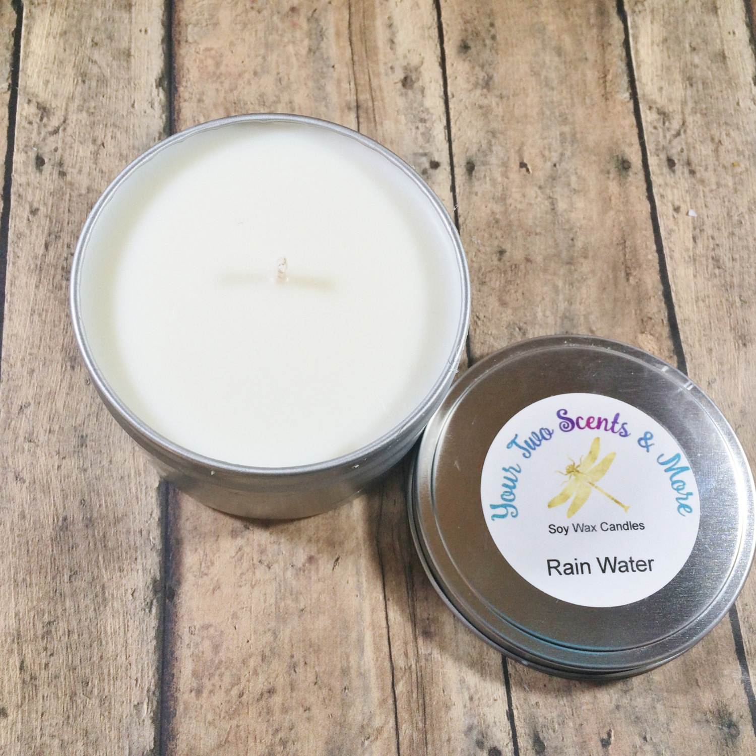 Rain Water Vegan Candle, Natural Soy Candle, Soy Wax Candle, Eco Friendly Candle, Scented Soy Candle, Handmade Candle, 8 Oz Candle Tin