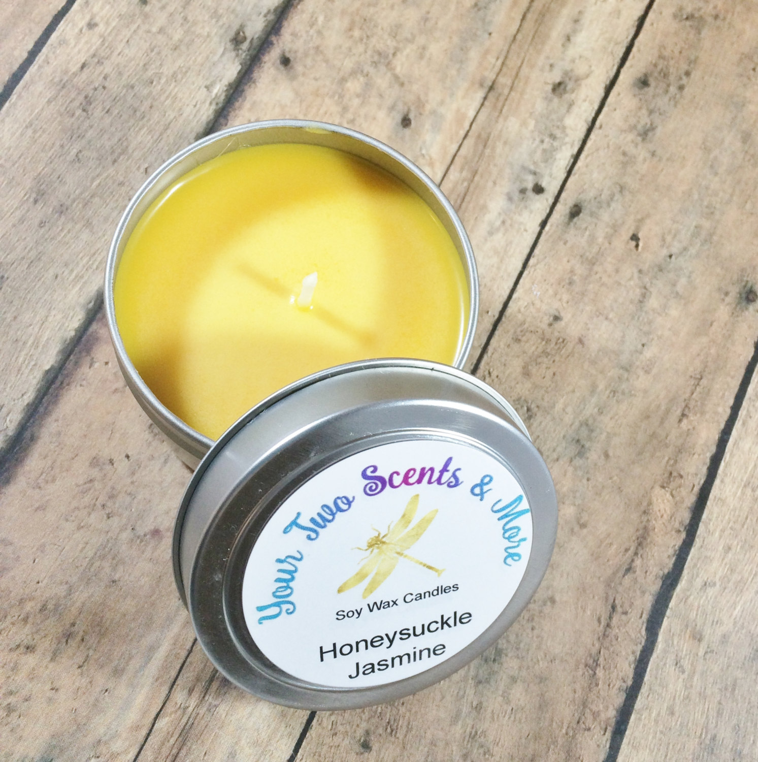 Soy Wax Candle, Scented Soy Candle, 4 Oz Candle Tins, Natural Soy Candles, Vegan Candles, Eco Friendly Candle, Honeysuckle Jasmine Candle