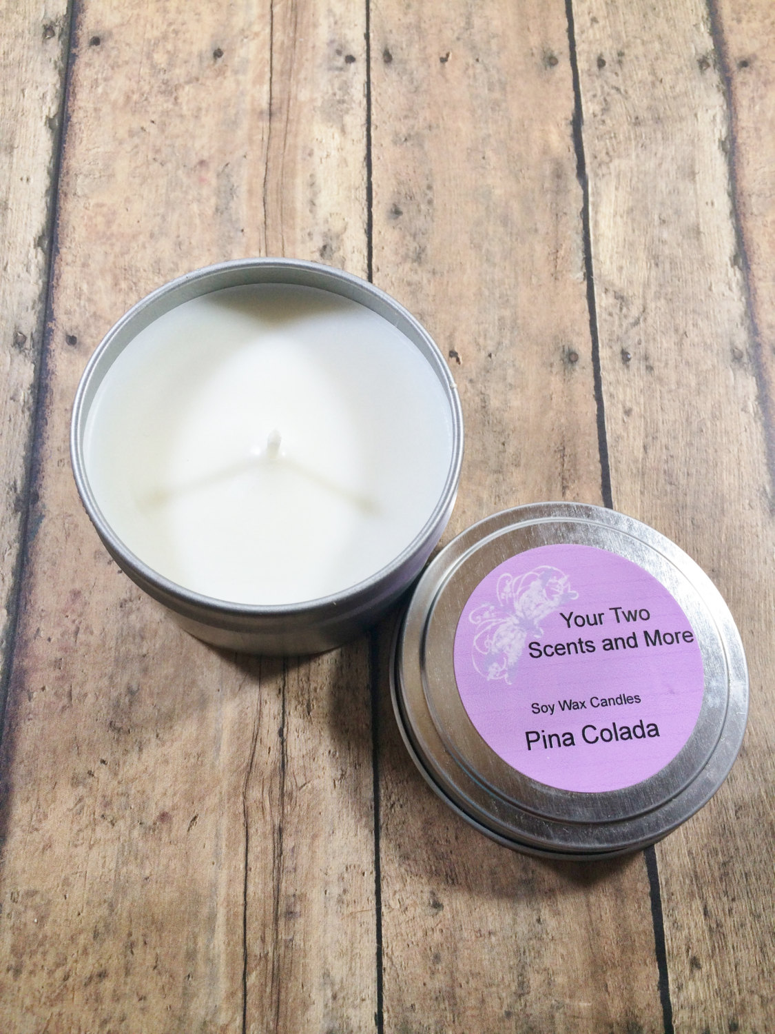 Pina Colada Travel Candle, 6 Oz Candle Tin, Scented Soy Candle, Handmade Candle, Soy Wax Candle, Natural Candle, Vegan Candle, Eco Friendly