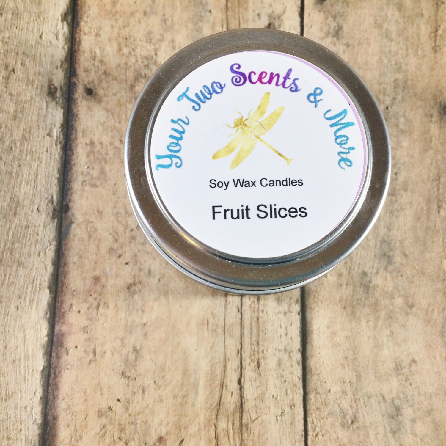 Fruit Slices Vegan Candle, Soy Wax Candle, Natural Soy Candle, Eco Friendly Candle, Scented Soy Candle, Handmade Candle, 4 Oz Candle Tin